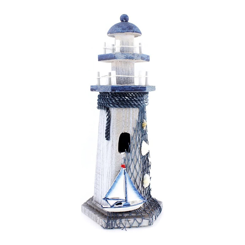 Este é um item de farol de madeira feito à mão e decorado. Ele mede 10,6 "de altura e o diâmetro do fundo do farol é de 4,6", por favor, encontre uma régua para saber o quão grand...